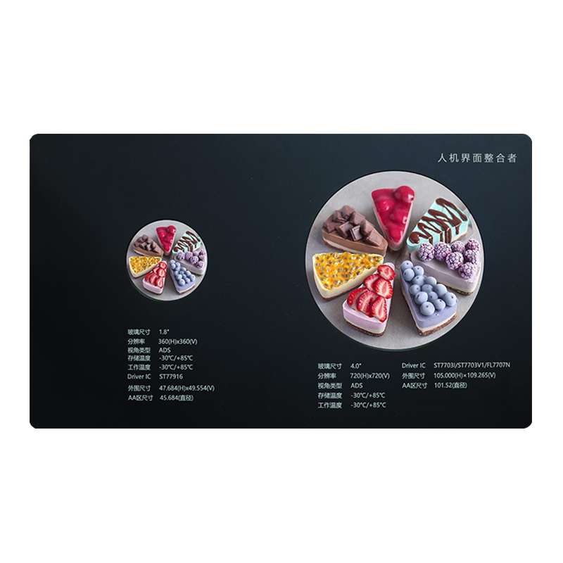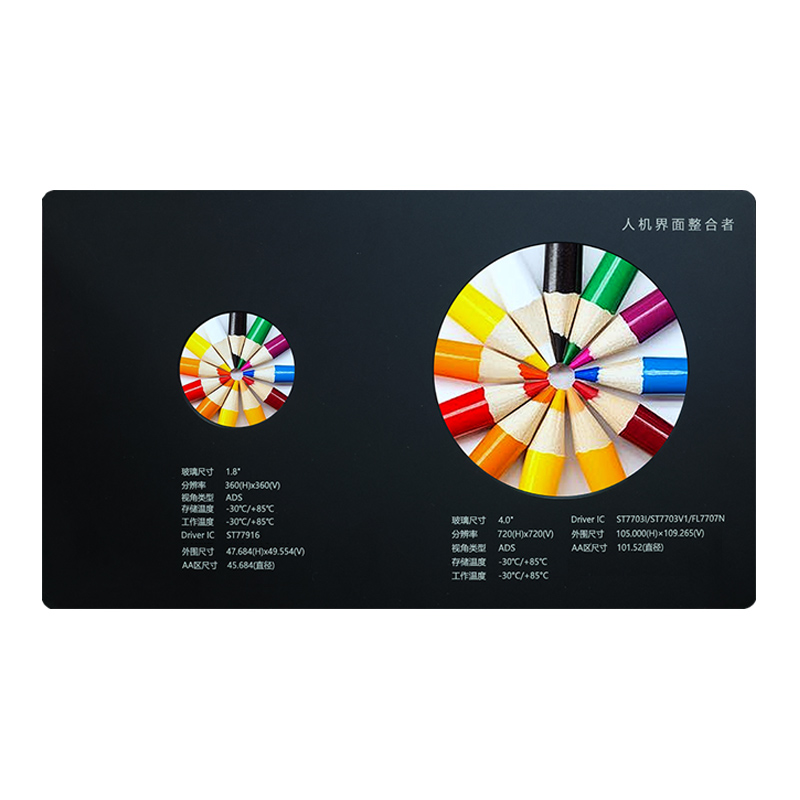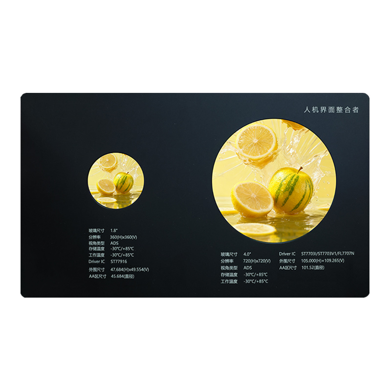 Овој 4,0-инчен TFT кружен LCD дисплеј е дизајниран за роботи за домашни миленици со вештачка интелигенција и за автомобилски инструменти. Неговата висока резолуција од 720x720 во комбинација со технологијата ADS дава неверојатни визуелни слики. Отпорен на екстремни температури (-30℃ до +85℃) и нуди повеќе опции за IC на возачот, тој покажува одлична флексибилност на приспособениот екран. Големата кружна AA област од 101,52 mm обезбедува интуитивен приказ на информации. Овој LCD екран со високи перформанси е идеално решение за подобрување на привлечноста на интеракцијата човек-машина.