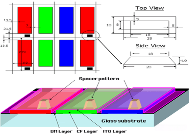 LCM/INCELL модулите се сложено наредени од TFT стакло, филтер за боја (CF), горни/долни поларизатори, слоеви со течни кристали и системи за позадинско осветлување. Промената на бојата произлегува од ситните флуктуации во три критични области: