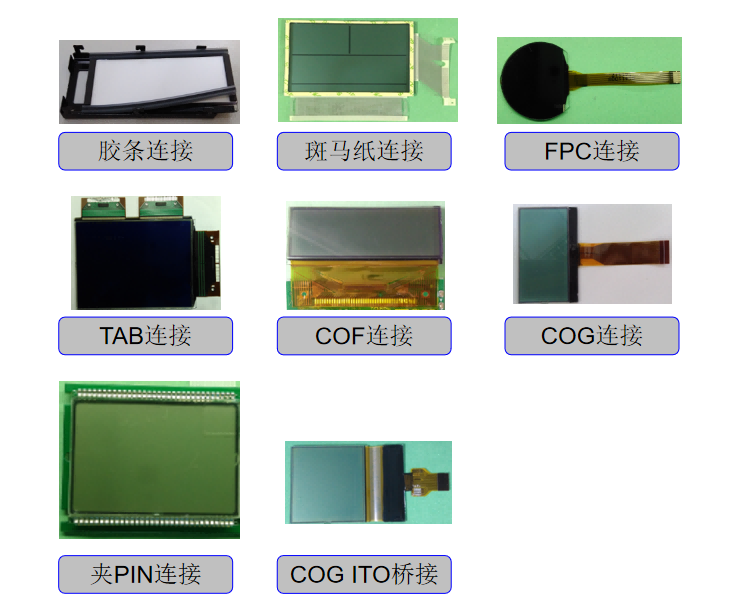 Понатаму, методот на поврзување е подеднакво клучен. Од традиционалните врски со зебра лента/еластомер до понапредни FPC, TAB и COF врски, можеме да го избереме оптималното решение за електрично поврзување кога ќе ги приспособите компонентите на LCD екранот, врз основа на вашите барања за пренос на сигнал и просторен распоред.