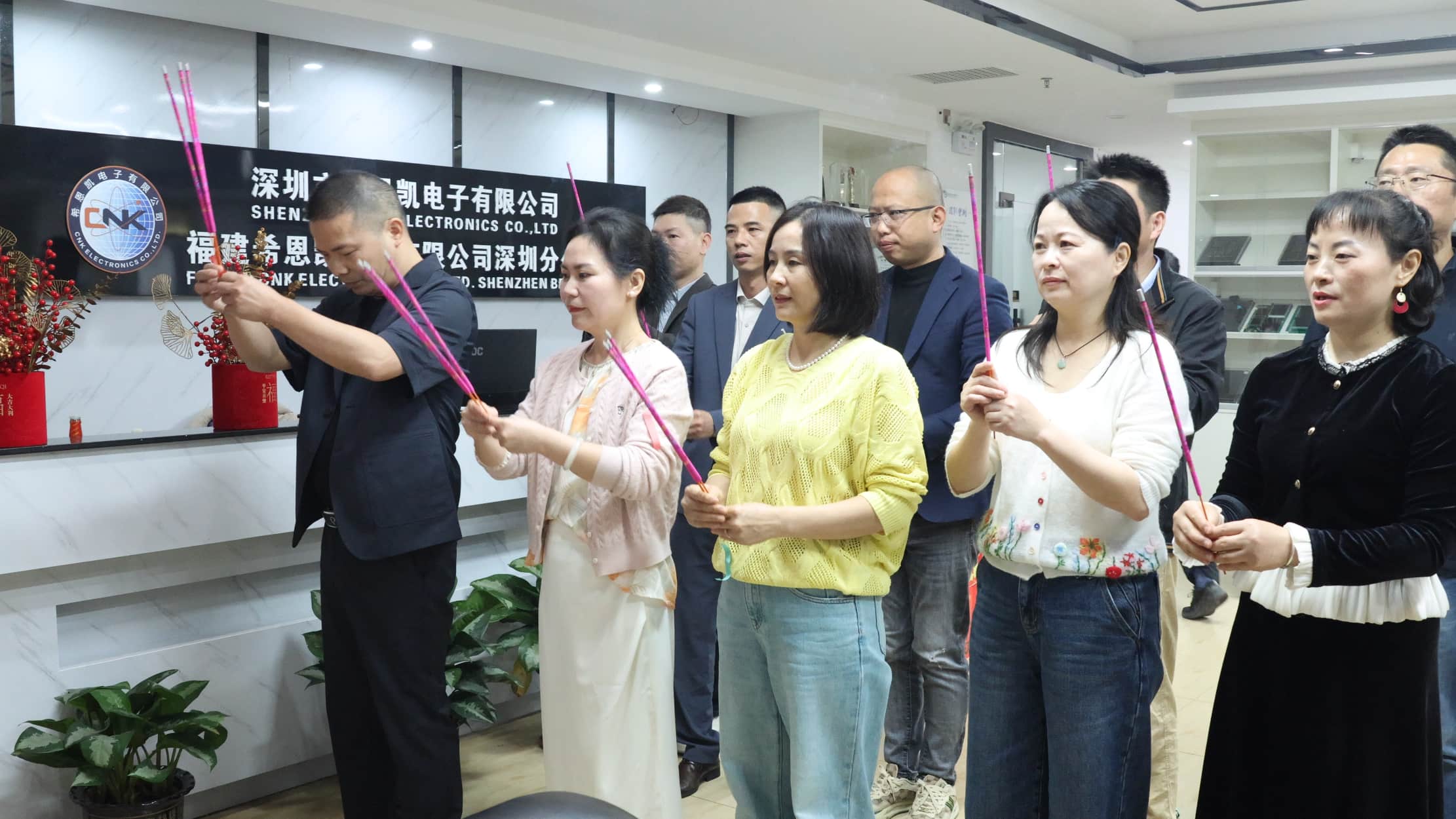Во зори, највисокото раководство на компанијата се собра и ги поведе сите вработени да одржат свечено отворање. Од клупите се креваше чад од темјан, а приносите беа изобилни. Ова не само што ја изрази нашата почит кон небото и земјата, туку ги пренесе и срдечните желби на сите вработени за бериќетна година со поволни временски услови и непречено работење. Среде темјанот, лидерите понудија темјан со голема посветеност, молејќи се за благослов и среќа за големите планови на компанијата во новата година.