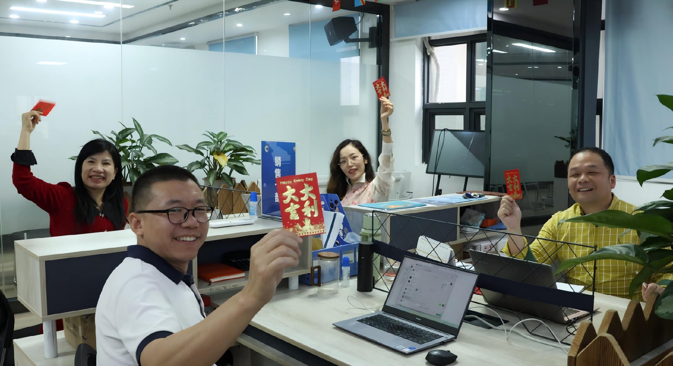 По живата церемонија, пристигна најсреќниот момент за вработените - делењето на новогодишните почетни црвени пликови! Водачите еден по еден ги делеа црвените пликови полни со благослови и среќа, лично доставени до секој вработен што се враќаше. Ова беше новогодишната честитка на компанијата до сите, а беше и мотив да ги поттикнеме сите да се вратат на работа и да се вклучат во новата битка! По добивањето на црвените пликови, лицата на сите беа исполнети со светли насмевки, а атмосферата на сцената беше топла и пријатна.