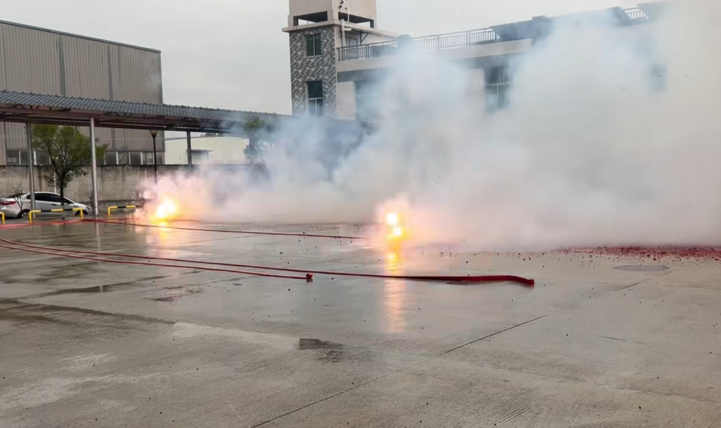 Бум, бум... Додека одекна заглушувачкиот звук на петардите и сјајниот звук на топовите, предниот дел на четата веднаш се претвори во црвено море. Ова не само што го отфрли студот и лошата среќа на старата година, туку и пукна со енергичната виталност и безграничната надеж на новата година. Црвениот шут од петарда ја покри земјата, симболизирајќи дека компанијата ќе има долга и просперитетна година со континуирани успеси и црвени достигнувања!