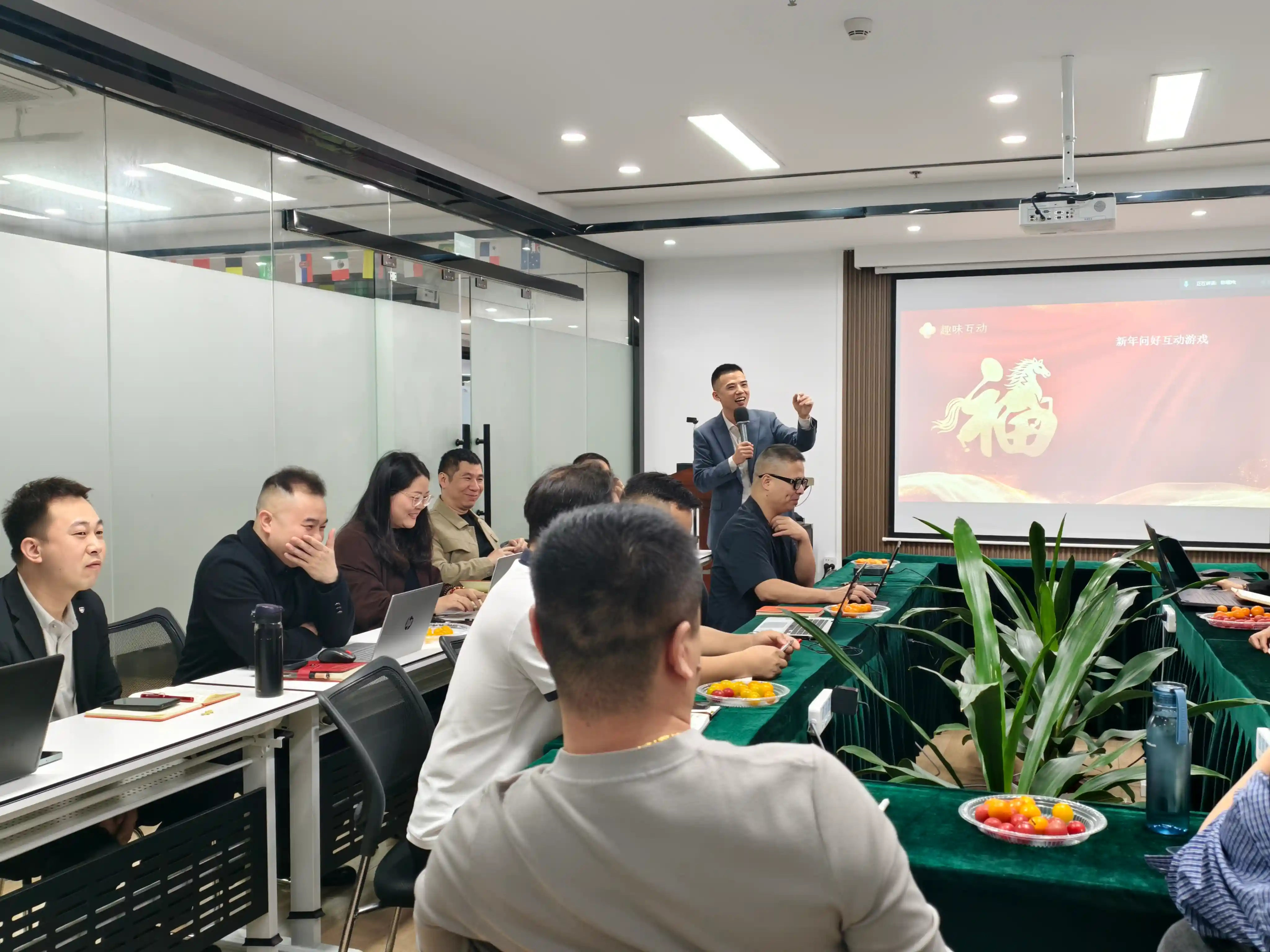 Настанот започна со лесна и забавна интерактивна игра „Новогодишни честитки“. Колегите разменија благослови за Годината на коњот, премостувајќи ги далечините со смеа и радост и разгорувајќи ја атмосферата на сцената. Насмеани лица и искрени желби се споија во најтоплиот тон на тимот.