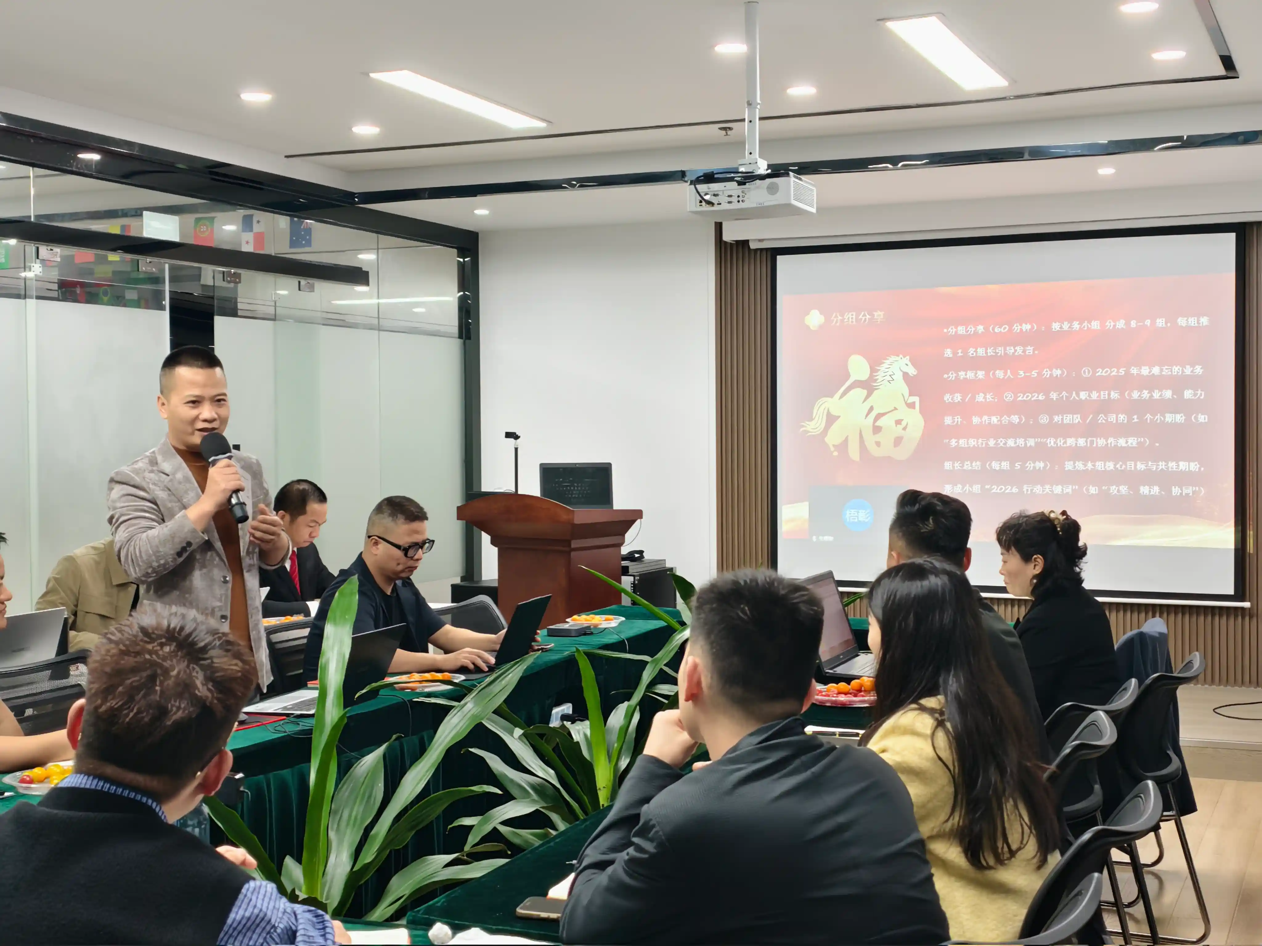 Претседавачот целосно ги потврди достигнувањата на Одделот за продажба во 2025 година и одговори на очекувањата покренати од секоја група еден по еден. Извлекувајќи мудрост од Тао Те Чинг, тој го разјасни начинот на продажба и личниот раст, нагласувајќи ја важноста на поставувањето цели и проучувањето на методите, само-надминувањето и иновативноста. Тој, исто така, сподели филозофии за продажба во врска со надворешниот имиџ, меѓучовечките односи и емоционалната поврзаност. Понатаму, тој ги претстави политиките на компанијата за приоритетна услуга за клучните клиенти, финансиска поддршка и осигурување на проекти, охрабрувајќи ги сите да ја зајакнат својата доверба, проактивно да ги истражуваат потребите на клиентите и да го интегрираат личниот раст со развојот на компанијата. Тој го заврши своето обраќање со охрабрување на тимот да ги прифати предизвиците од 2026 година со нов стил и нови очекувања. Следната сесија за прашања и одговори дополнително ја разјасни насоката и го зајакна тимскиот морал.